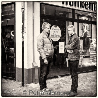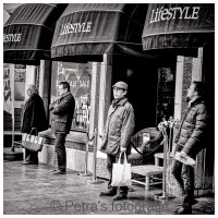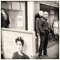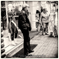 Op deze wijze is voor mij de serie “Poortwachters” ontstaan. Deze poortwachters zijn personen (meestal mannen) die je in iedere winkelstraat naast de ingang van winkels “op wacht” ziet staan totdat de partner klaar is met winkelen.