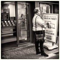 Een andere mogelijkheid is dat je een bepaald concept in je hoofd hebt en vervolgens naar onderwerpen of situaties opzoek gaat die daaraan voldoen. Dat is voor mij de methode bij straatfotografie. Natuurlijk kun je ook bij dit soort genre van fotografie op stap gaan en hopen dat je iets ziet. Het zal echter meer opleveren en uiteindelijk betere foto’s opleveren wanneer je met een vooraf bedacht plan op stap gaat. Voor wat betreft straatfotografie zijn er voldoende uitgangspunten, denk hierbij aan: De mobiele telefoon in het straatbeeld, mensen bepakt en bezakt met boodschappen, personen en hun hond of personen in aparte kleding enzovoorts.